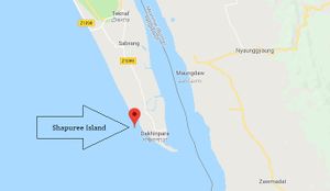 နတ်မြစ်အနောက်ဘက်ကမ်းအဝတွင် ရှိသည်။ ကယုချောင်းမှ တောင်ဘက် ၉ မိုင်အကွာတွင် ရှိသည်။ ၁၇၈၅ ခုနှစ်တွင် စစ်ဘေးခိုလှုံလာသူ လက်ဝဲမြန်အား အင်္ဂလိပ်တို့က ဤကျွန်းအုပ်အဖြစ် ခန့်ခဲ့သည်။ သျှင်မညိုကျွန်းဟုလည်း ရှိသေးသည်။ ယခုနတ်မြစ်ရေရိုးသည် သျှင်မဖြူကျွန်း၏ အရှေ့ဘက်မှ စီးဆင်းသွားပြီး ကျွန်းသည် ဘင်္ဂလားဒေ့ရှ်ပိုင်ကျွန်းဆွယ်နှင့် တစ်စပ်တည်းလိုလို ဖြစ်သွားသည်။ ဤကျွန်းကို အင်္ဂလိပ်လို (Shapuree) ဖြစ်သည်။